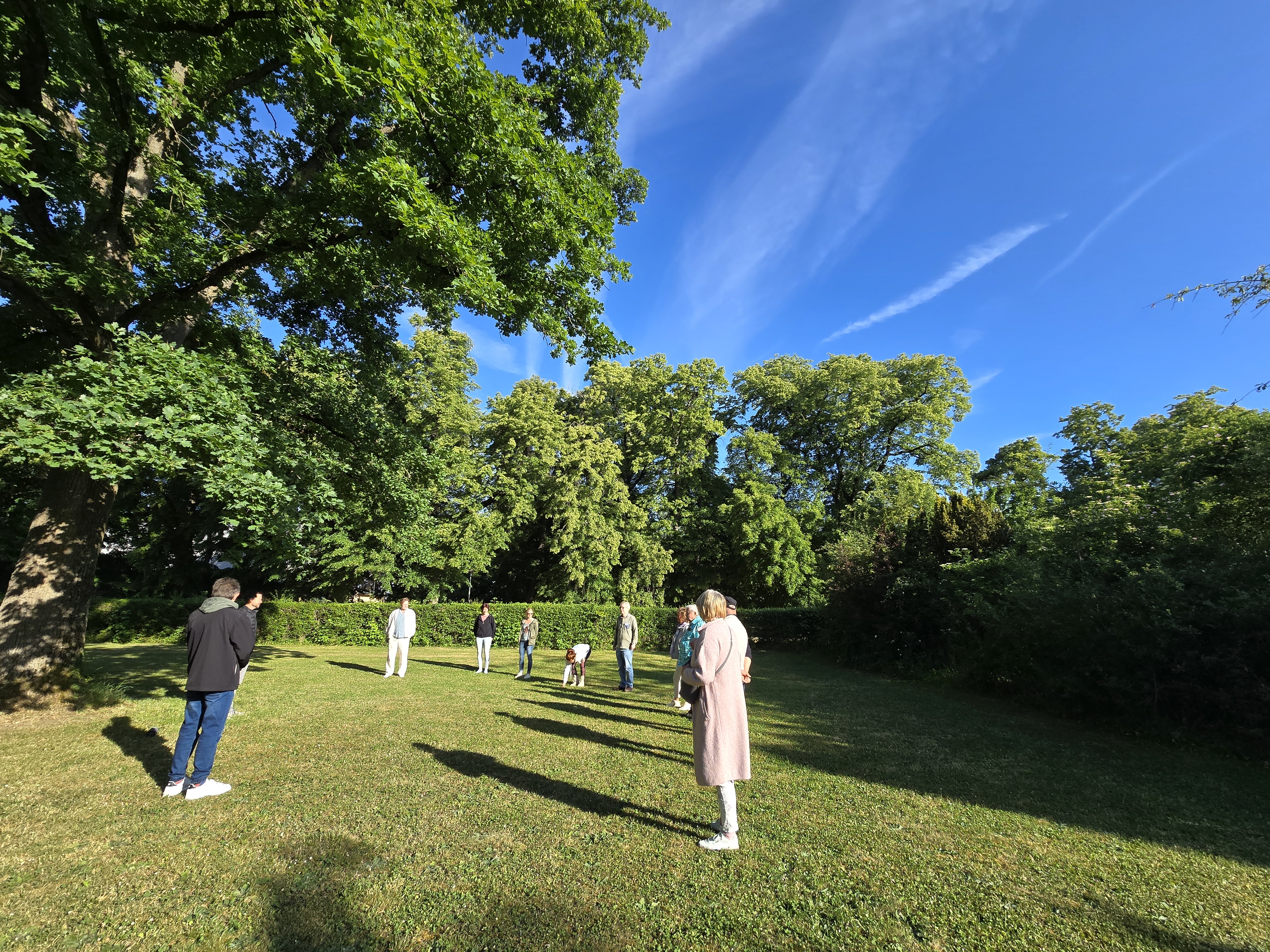 Früh geweckt von den wunderbaren Vogelstimmen begannen wir den Samstag bei herrlichem Sonnenschein im Freien. Wolfgangs kurze Meditation richtete unsere Aufmerksamkeit dabei auf alle weiteren Geräusche der Umgebung und die Ruhe in uns selbst, so dass wir entspannt in den Morgen starten konnten.